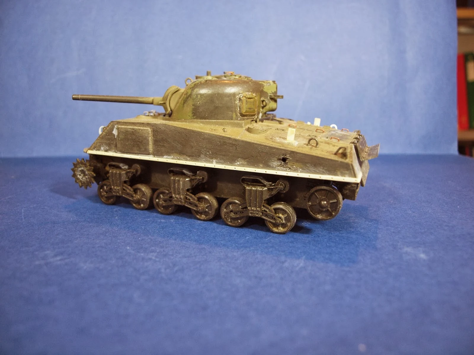 Suite du scratch je galère mais j'avance ,j'attaque la forme du toit ,le sherman et le M31 sont peints avec la méthode zénithal remis à ma sauce reste les détails d'usures ,je vais mettre l'action en fin automne car le sherman est un late. Place aux photos.